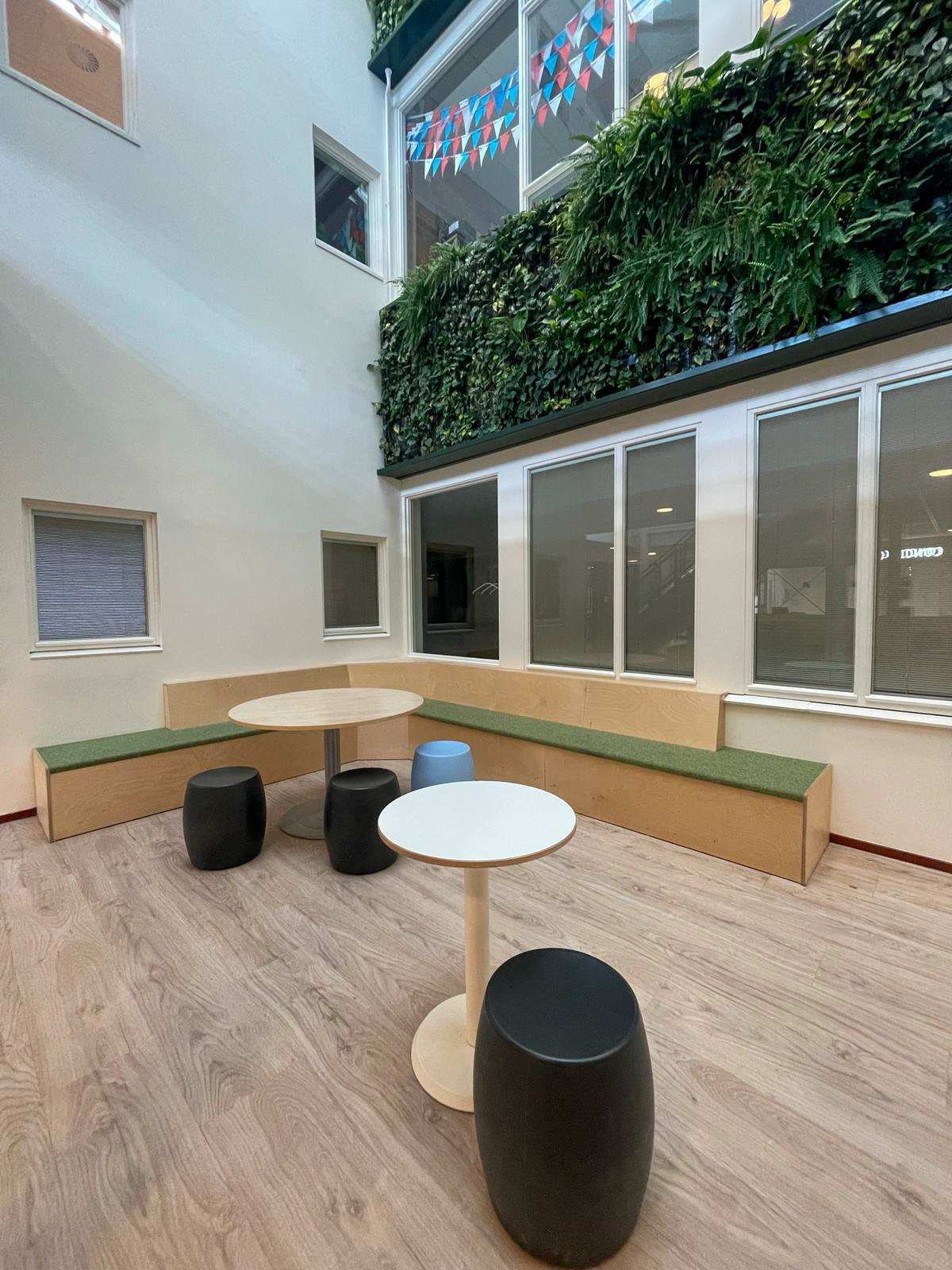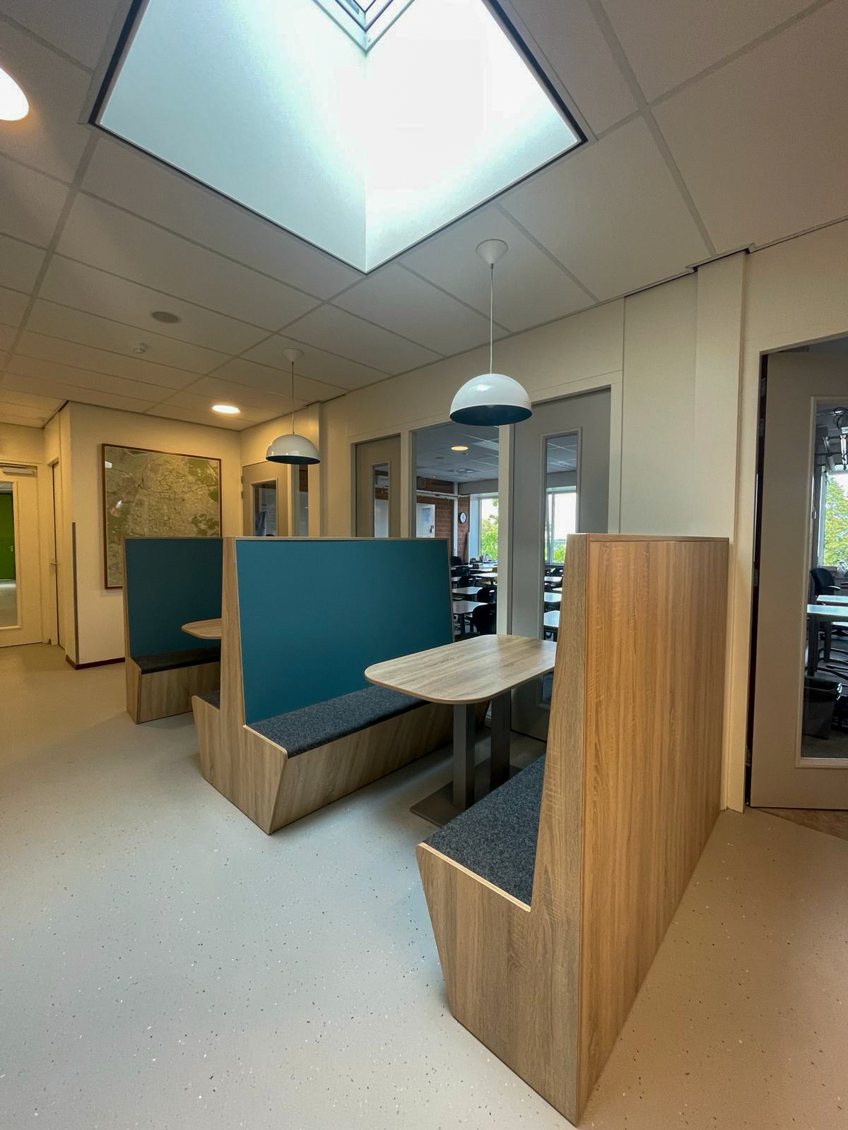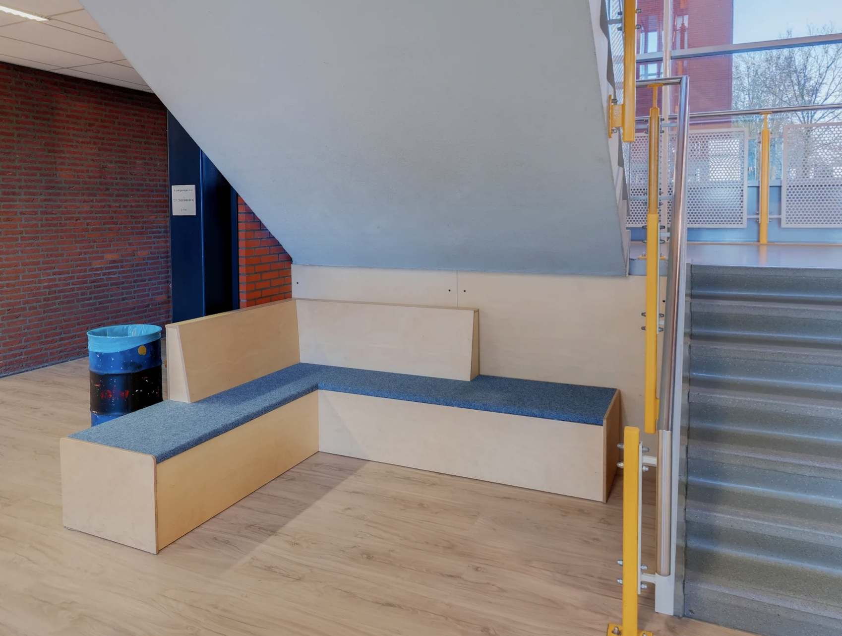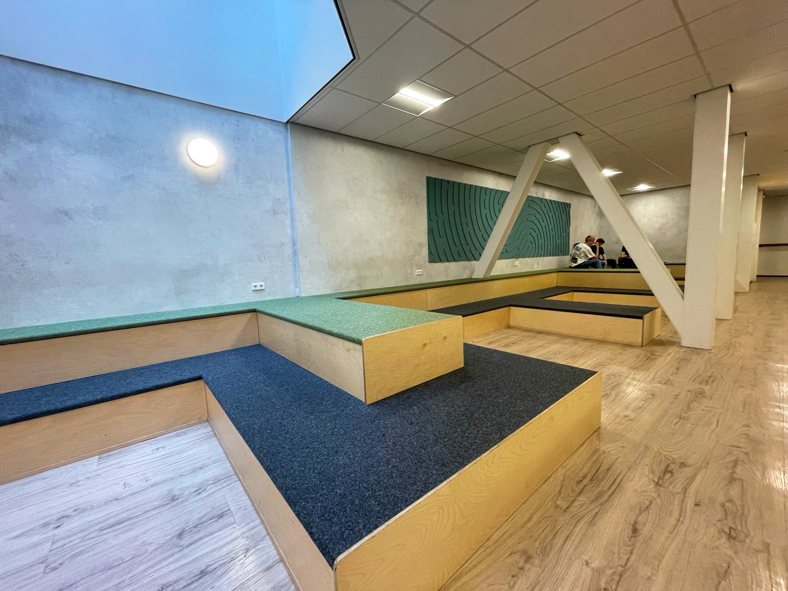 Bij het Johannes Fontanus College in Barneveld hebben wij een ontwerp en levering gedaan voor de entree, aula en diverse leerpleinen. De boulevard in de aula vormt naast de kluisjes een looppad. Naast dit pad zijn er verschillende zitplekken gerealiseerd in de ruimte om pauze te houden of om te zitten tijdens een tussenuur. In de verschillende vleugels zitten tussen de lokalen leerpleinen waar leerlingen in kleine groepjes of individueel aan het werk kunnen gaan in de werknissen.